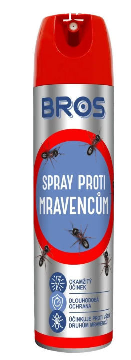 Bros sprej proti mravencům je aerosolový přípravek k okamžitému použití. Je určen k likvidaci obtížného lezoucího hmyzu. Postříkáme místa výskytu hmyzu (cestičky, skrýše, štěrbiny apod.). Přípravek působí okamžitě po použití. Po provedení dezinfekce opusťte místnost a nechejte ji uzavřenou ještě po dobu přibližně 1 hodiny. Následně důkladně vyvětrejte.