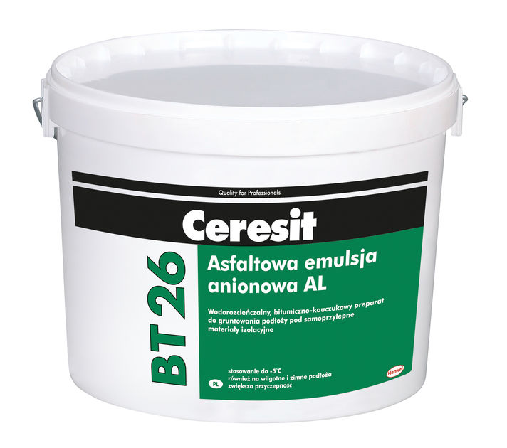 Podkladový nátěr Ceresit BT 26 "ALLWEATHER" používejte pouze na rovném, pevném, nosném, čistém, suchém nebo mírně vlhkém podkladu. Okartáčujte stávající nosný živičný podklad a zbavte jej prachu. Velmi důkladně odstraňte z výstupků podkladové desky a čelní strany podkladové desky nečistoty a přebytečnou maltu. Při nízkých teplotách se ujistěte, že na podkladu není led.