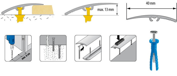 Specifikace Přechodová lišta natloukací LW 40 hliník