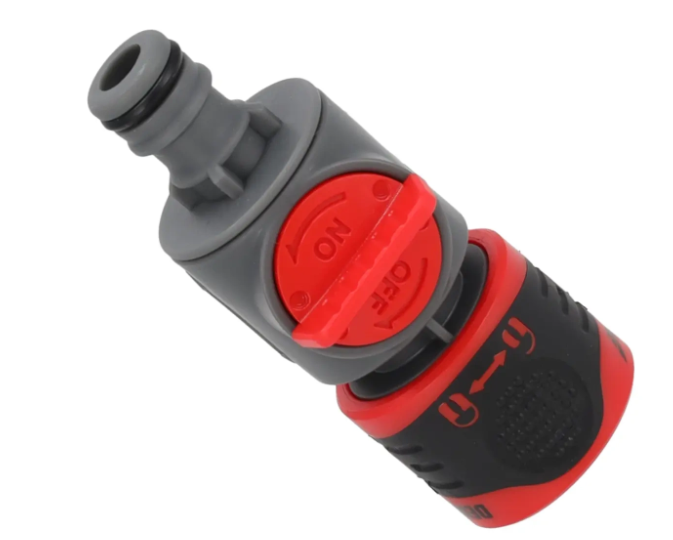 S ventilovoupřípojkou je možné rychle a pevně připojit zahradní hadice a další zahradní zavlažovací prvky, aniž by bylo nutné vypínat hlavní vodovodní ventil. Knoflík umožňuje také regulovat průtok vody. Praktický knoflík uzavírá průtok vody pro rychlou výměnu nebo připojení postřikovacích tyčí. Konektor je vyroben z odolného plastu ABS a PP, který je pot ažen měkkým plastem TPR pro dlouhou životnost a bezpečné uchopení i za mokra. Rychlospojka velikosti 1/2"