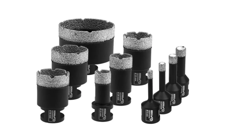 Sada 10 diamantových vrtáků Vacuum Braze d pro vrtání do keramických dlaždic, porcelánové kameniny, betonu, cihel, skla, asfaltu, laminátů, PVC, oceli, neželezných kovů, dřeva atd. Technologie Vacuum Braze d zaručuje vysokou stabilitu a pevnost spojení diamantových zrn s matricí a tělesem. Absence pájených nebo laserem svařovaných součástí (diamantových segmentů), které se mohou během provozu oddělit od brusného tělesa,zajišťuje bezpečnou práci s nástrojem. Použití závitu M 14 umožňuje montáž brusného frézovacího nástroje na jakoukoli úhlovou brusku. Brusky Vacuum Braze d lze použít pro mokré i suché aplikace.
