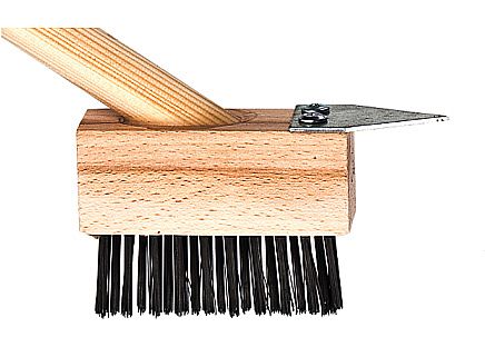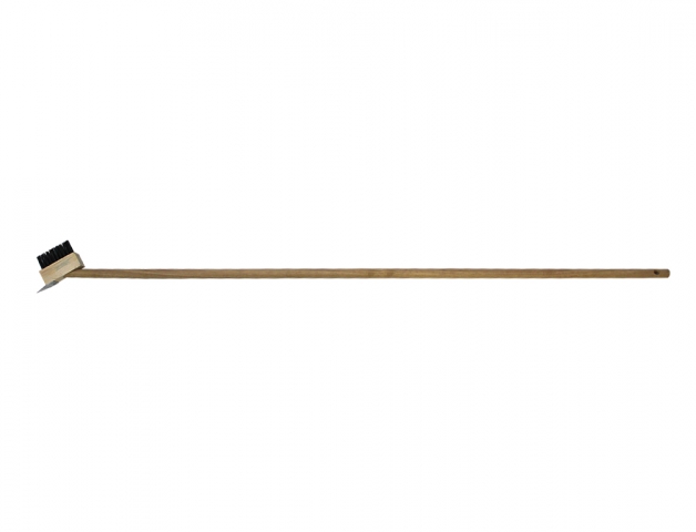 Kartáč na čištění zámkové dlažby s rukojetí. Kartáč na zámkovou dlažbu je velmi účinný při odstraňování mechu a plevele na menších plochách. Kartáč ze smrkového dřeva je osazený kvalitním ocelovým drátem. Délka násady 140 cm.