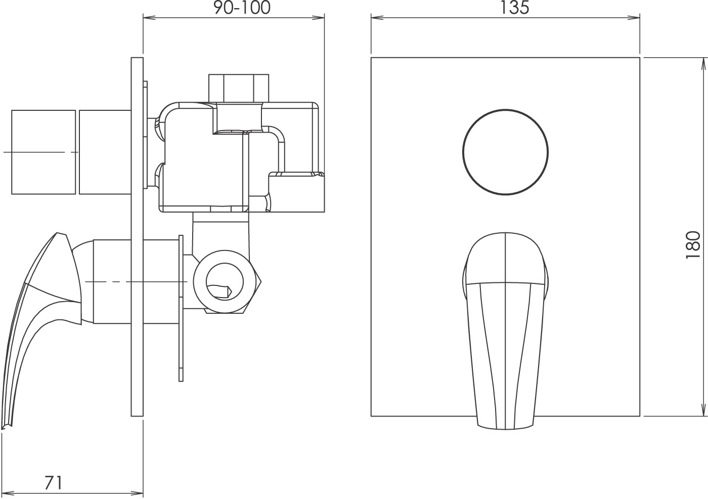 Podomítková baterie s přepínačem - Podomítková baterie se 2 výstupy