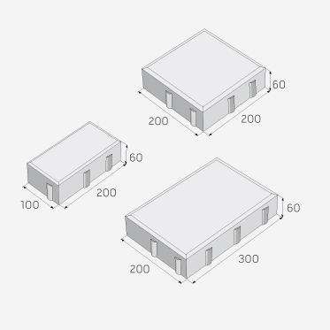 - rozměr 200 x 100 x 60, 200 x 300 x 60, 200 x 200 x 60