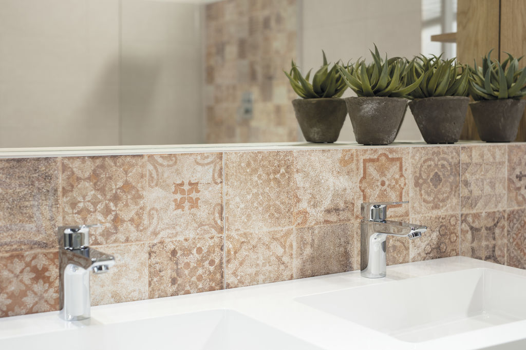 Imitaci betonu navozují slinuté glazované rektifikované dlaždice 60 x 60, 30 x 60 cm a obkládačky 30 x 60 cm. Industriální charakter série zjemňuje celoplošný dekor s patchworkovými motivy, a to jak na dlaždicích, tak na obkládačkách. Ornamentální obkládačka či mozaika 10 x 10 nebo 5 x 5 cm může být zajímavou dekorací nebo praktickým pomocníkem při zařizování koupelny i kuchyně. Dlaždice mají hladký matný povrch s protiskluzností R10/B se širokou škálou uplatnění v interiéru i na venkovních terasách.