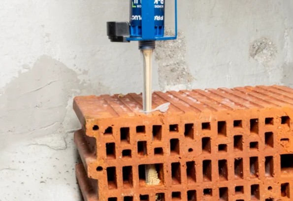 - Pevné podklady: Vložte směšovací trysku na dno vyvrtaného otvoru a vstříkněte pryskyřici, přičemž trysku pomalu vytahujte, jakmile je otvor naplněn na 70 % své hloubky.