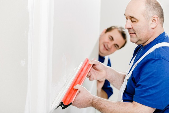 Sádrová stěrka/tenkovrstvá omítka s hlazeným povrchem.