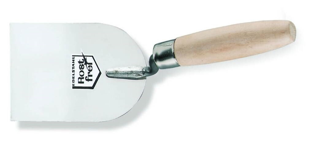 Štukatérská nerezová špachtle s dřevěným držadlem.